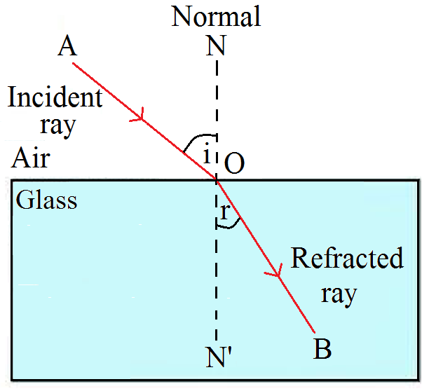 First law: According to the first law of refraction, the incident ray, the refracted ray and the normal at the point of incidence, all lie in the same.