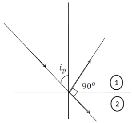 When unpolarized light is incident on the surface separating two media, the reflected light gets (completely) polarised only when the reflected light and refracted light become perpendicular to each other.