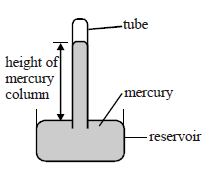 An inverted tube barometer is kept on a lift with a moving downward with a deceleration $\alpha $ . The density of mercury is $\rho$ and acceleration due to gravity is $g$ . If the atmospheric pressure be $P_0$ then