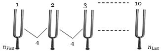 Ten tuning forks are arranged in increasing order of frequency in such a way that any two nearest tuning forks produce $4$ beats/sec. The highest frequency is twice of the lowest. Possible highest and the lowest frequencies are