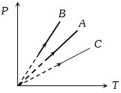 Pressure versus temperature graph of an ideal gas at constant volume $V$ of an ideal gas is shown by the straight line $A$. Now mass of the gas is doubled and the volume is halved, then the corresponding pressure versus temperature graph will be shown by the line