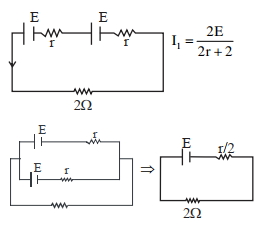 The combination of two identical cells, whether connected in series or parallel combination provides the same current through an external resistance of $2 \,\Omega$. The value of internal resistance of each cell is ............ $\Omega$