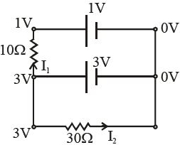 $I_{2}=\frac{3-0}{30}=0.1 \,A$