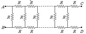 In the figure, the value of resistors to be connected between $C$ and $D$ so that the resistance of the entire circuit between $A$ and $B$ does not change with the number of elementary sets used is
