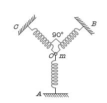 A particle of mass $m$ is attached to three identical springs $A, B$ and $C$ each of force constant $ k$ a shown in figure. If the particle of mass $m$ is pushed slightly against the spring $A$ and released then the time period of oscillations is