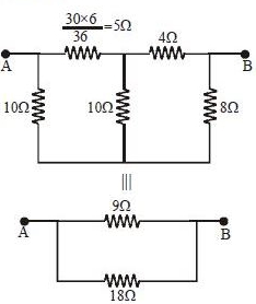Four wires $AB,\,\,BC,\,\,CD,\,\,DA$ of resistance $4\, \Omega$ each and a fifth wire $BD$ of resistance $8\, \Omega$ are joined to form a rectangle $ABCD$ of which $BD$ is a diagonal. The effective resistance between the points $A$ and $B$ is
