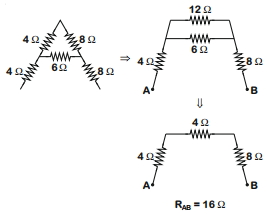 Four resistances are connected in a circuit in the given figure. The electric current flowing through $4\, ohm$ and $6\, ohm$ resistance is respectively