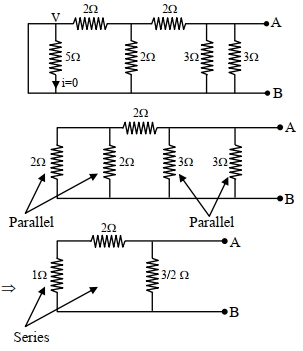 ${R}_{\text {eq }}=\frac{3 \times 3 / 2}{3+3 / 2}=\frac{9 / 2}{9 / 2}=1\, \Omega$