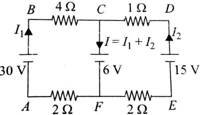 $V_{F}+6+4 I_{1}-30+2 I_{1}=V_{F}$