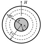 $H = \frac{{dQ}}{{dt}} = \frac{{4\pi K{r_1}{r_2}({T_1} - {T_2})}}{{{r_2} - {r_1}}}$