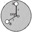 The figure shows the cross section of a long cylindrical conductor through which an axial hole of radius $r$ is drilled with its centre at point $A$ . $O$ is the centre of the conductor. If an identical hole were to be drilled centred at point $B$ while maintaining the same current density the magnitude of magnetic field at $O$