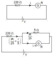 $\left(\frac{\mathrm{i} \mathrm{R}}{25}+\frac{\mathrm{i}}{5}\right) 220+\frac{\mathrm{i}}{5} \mathrm{R}=\mathrm{i}(220+\mathrm{R}) \quad$ From eq $(i)$