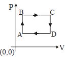 A sample of an ideal gas is taken through the cyclic process $ABCA$ as shown in figure. It absorbs, $40\,J$ of heat during the part $A B$, no heat during $BC$ and rejects $60\,J$ of heat during $CA$. $A$ work $50\,J$ is done on the gas during the part $BC$. The internal energy of the gas at $A$ is $1560\,J$. The work done by the gas during the part $CA$ is.............$J$