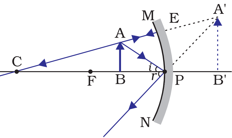 When the object is located between the focus (F) and the pole (P) of the mirror, the image is formed behind the mirror; this image is virtual, erect and large.