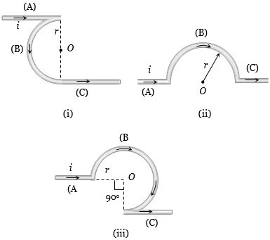 ${B_B} = \frac{{{\mu _0}}}{{4\pi }}.\frac{{\pi \,i}}{r}\odot$
