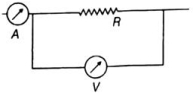 In the adjoining circuit diagram, the readings of ammeter and voltmeter are $2\, A$ and $120 \,V$, respectively. If the value of $R$ is $75\, \Omega$, then the voltmeter resistance will be $\Omega$