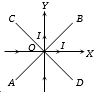 Two very thin metallic wires placed along $X$ and $Y$-axis carry equal currents as shown here. $AB$ and $CD$ are lines at $45^\circ $ with the axes with origin of axes at $O$. The magnetic field will be zero on the line