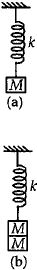 When a another mass $M$ is also suspended with it as shown in figure $(b).$