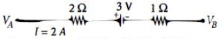 The potential difference $(V_A - V_B)$ between the points $A$ and $B$ in the given figure is ............ $V$