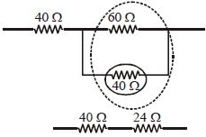 A wire of length ' $r$ ' and resistance $100 \Omega$ is divided into $10$ equal parts. The first $5$ parts are connected in series while the next $5$ parts are connected in parallel. The two combinations are again connected in series. The resistance of this final combination is: