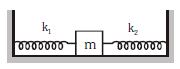 A block of mass $m$ is attached to two springs of spring constants $k_1$ and $k_2$ as shown in figure. The block is displaced by $x$ towards right and released. The velocity of the block when it is at $x/2$ will be