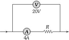 In the diagram shown, the reading of voltmeter is $20\, V$ and that of ammeter is $4\, A$. The value of $R$ should be (Consider given ammeter and voltmeter are not ideal)