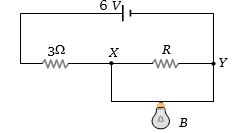 In the following circuit, bulb rated as $1.5\, V$, $0.45\, W$. If bulbs glows with full intensity then what will be the equivalent resistance between $X$ and $Y$ ............. $\Omega$