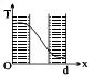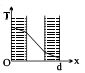 The wall with a cavity consists of two layers of brick separated by a layer of air.All three layers have the same thickness and the thermal conductivity of the brick is much greater than that of air. The left layer is at a higher temperature than the right layer and steady state condition exists. Which of the following graphs predicts correctly the variation of temperature $T$ with distance $d$ inside the cavity?