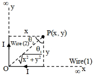 $=\frac{\mu_{0}}{4 \pi} \frac{{I}}{{y}}\left(1+\frac{{x}}{\sqrt{{x}^{2}+{y}^{2}}}\right) \ldots \ldots(1)$