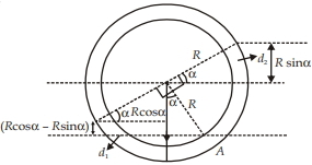 $\left( {R\cos \alpha + R\sin \alpha } \right){d_2}g = \left( {R\cos \alpha - R\sin \alpha } \right){d_1}g$