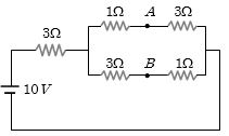 A battery of $e.m.f.$ $10\, V$ is connected to resistance as shown in figure. The potential difference ${V_A} - {V_B}$ between the points $A$ and $B$ is .................... $V$