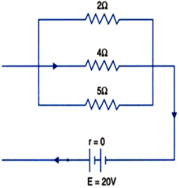 1. Given, three resistors $2\ \Omega,\ 4\ \Omega\ \text{and}\ 5\ \Omega$ are combined in parallel.