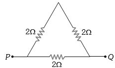 Two wires of the same material and equal length are joined in parallel combination. If one of them has half the thickness of the other and the thinner wire has a resistance of $8\, ohms$, the resistance of the combination is equal to