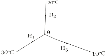 $\frac{30-\theta}{\left(\frac{30}{K A}\right)}=\frac{\theta-20}{\left(\frac{20}{K A}\right)}+\frac{\theta-10}{\left(\frac{30}{K A}\right)}$