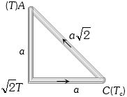 $ \Rightarrow \frac{{k(\sqrt 2 T - {T_C})A}}{a} = \frac{{k({T_C} - T)A}}{{\sqrt 2 a}}$
