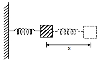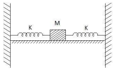 In the figure given below. a block of mass $M =490\,g$ placed on a frictionless table is connected with two springs having same spring constant $\left( K =2 N m ^{-1}\right)$. If the block is horizontally displaced through ' $X$ 'm then the number of complete oscillations it will make in $14 \pi$ seconds will be $.........$
