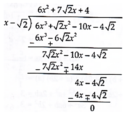 अब हम बांटते हैं $6 x^{3}+\sqrt{2} x^{2}-10 x-4 \sqrt{2}$ द्वारा $(x-\sqrt{2})$