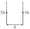 $=\frac{\mu_{0} I _{1} I _{2}}{2 \pi d }, I _{1}= I _{2}=5 \; A$