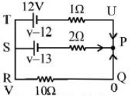 [Let potential at $\mathrm{P}, \mathrm{Q}, \mathrm{U}=0$ and at $\mathrm{R}=\mathrm{V}$