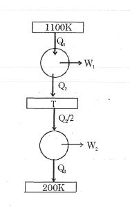 heat rejected by $1^{\text {st }}=$ input of $2 \mathrm{nd}=\frac{\mathrm{QT}_{2}}{800}$