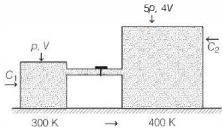 $\text { Now, } \frac{n_{2}{ }^{\prime}}{n_{1}{ }^{\prime}}=\frac{\frac{4 p_{0} V}{R(400)}}{\frac{p_{0} V}{R(300)}}=3$