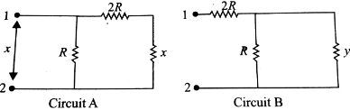 Circuit $A:$ $x=\frac{R(2 R+x)}{3 R+x}$ or $3 R x+x^{2}=2 R^{2}+R x$
