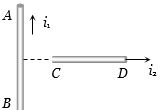 An infinitely long, straight conductor $AB$ is fixed and a current is passed through it. Another movable straight wire $CD$ of finite length and carrying current is held perpendicular to it and released. Neglect weight of the wire
