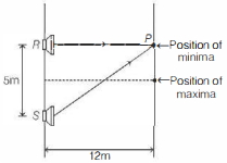 For a minima at $P$, path difference of sounds reaching $P$ must be an odd multiple of half wavelength.
