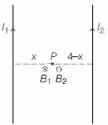 $=\frac{\mu_0}{2 \pi \times 10^{-2}}\left(\frac{I_1}{x}+\frac{I_2}{x-4}\right)$
