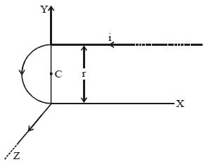 $(D)$ If $\mathrm{I}_1=\mathrm{I}_2$, then the $\mathrm{z}$-component of the magnetic field at the centre of the loop is $\left(-\frac{\mu_0 \mathrm{I}}{2 \mathrm{R}}\right)$