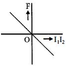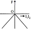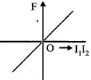 Two long straight parallel wires, carrying (adjustable) current $I_1$ and $I_2$, are kept at a distance $d$ apart. If the force $'F'$ between the two wires is taken as 'positive' when the wires repel each other and 'negative' when the wires attract each other, the graph showing the dependence of $'F'$, on the product $I_1 I_2$, would be