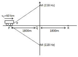 ($B$) The rate of change in beat frequency is maximum when the car passes through $Q$