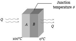 Two rectangular blocks $A$ and $B$ of different metals have same length and same area of cross-section. They are kept in such a way that their cross-sectional area touch each other. The temperature at one end of $A$ is $100°C$ and that of $B$ at the other end is $0°C$ . If the ratio of their thermal conductivity is $1 : 3$ , then under steady state, the temperature of the junction in contact will be ........ $^oC$