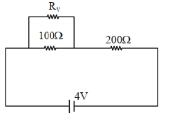 Two resistance of $100\ \Omega$ and $200\ \Omega$ are connected in series with a battery of $4 \mathrm{~V}$ and negligible internal resistance. $A$ voltmeter is used to measure voltage across $100 \Omega$ resistance, which gives reading as $1 \mathrm{~V}$. The resistance of voltmeter must be ___$\Omega$.